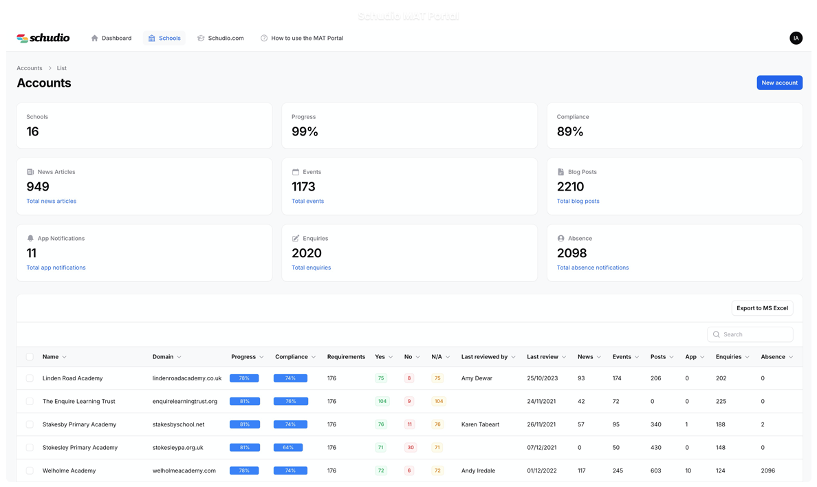 Our MAT Portal does more than just website compliance for Multi-Academy Trusts. With tools to centrally manage policies, analytics and content it’s the ultimate solution for simplifying across your schools.